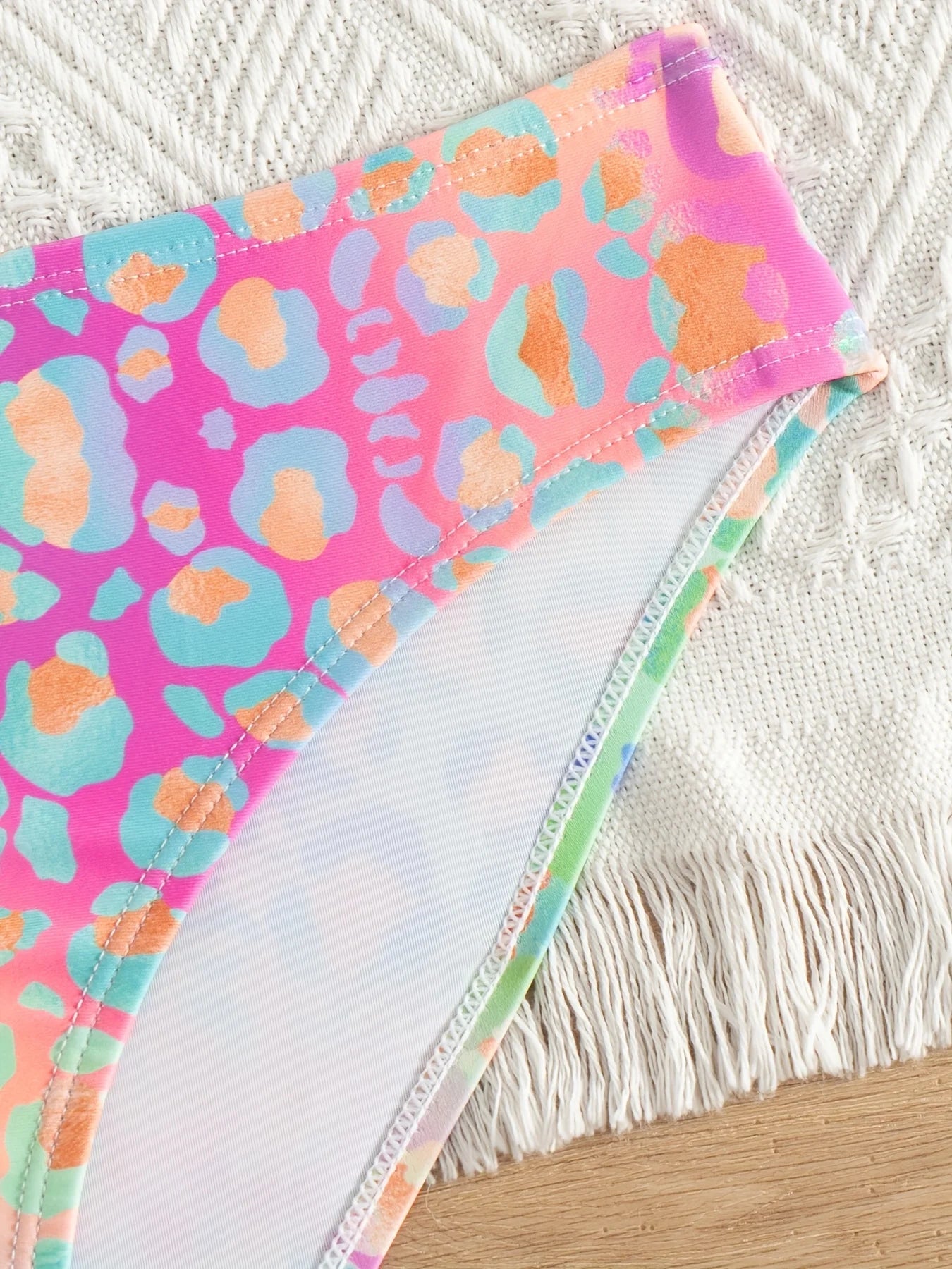 Bright Leopard Print Bikini Swimsuit for Teen Girls Summer Beachwear Two Piece Swimwear