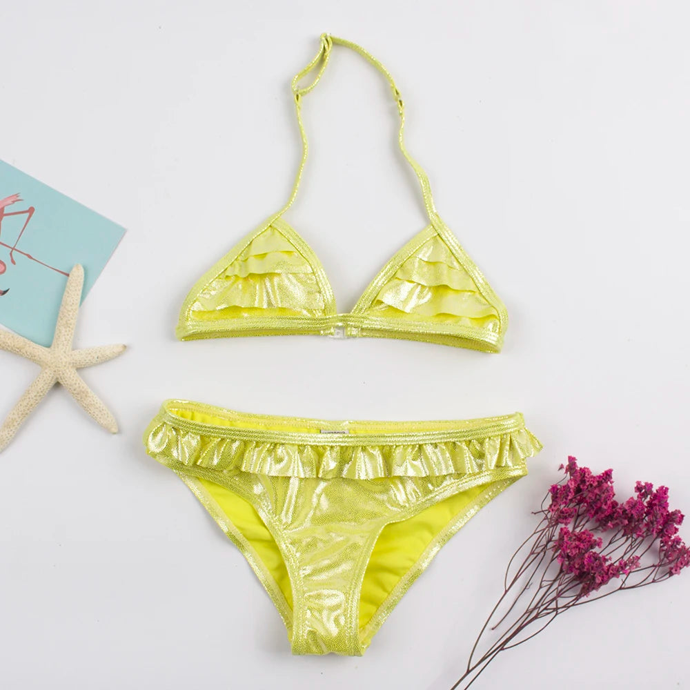 Shinning Ruffle Solid Summer Beach Girls Kids Swimwear Swimsuit Vacation Outdoor Play Adjustable Child Kids Bikini Set Shinning Ruffle Solid Summer Beach Girls Kids Swimwear Swimsuit Vacation Outdoor Play Adjustable Child Kids Bikini Set