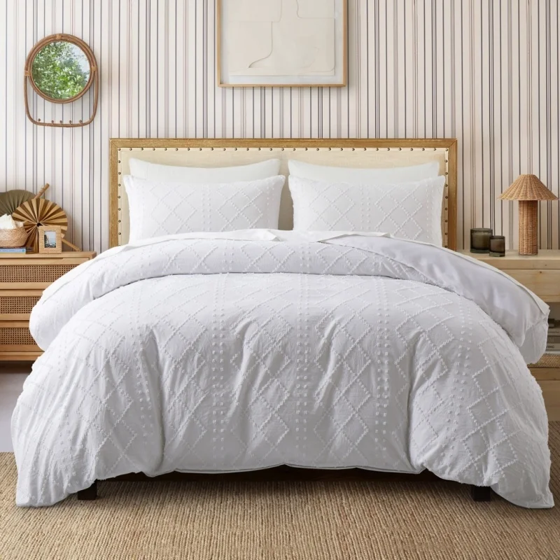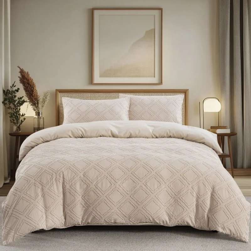 2/3pcs Duvet Cover Set,Tufted Geometric Comforter Cover +Pillowcas Boho Bed Set Soft Lightweight Bedding Set for All Seasons 2/3pcs Duvet Cover Set,Tufted Geometric Comforter Cover +Pillowcas Boho Bed Set Soft Lightweight Bedding Set for All Seasons