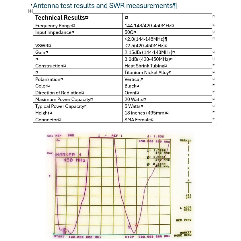 The original KD1MU designed Ham Radio stick antenna. Optimized for handheld Amateur radios, it is rugged and flexible. The antenna is 18 inches long and 1 mm in diameter. Designed for active radio operators who rely on their equipment to remain functional under the harshest conditions. Low SWR with higher gain due to the antenna length. This is a dual band antenna, optimized for 145 and 445 MHz.