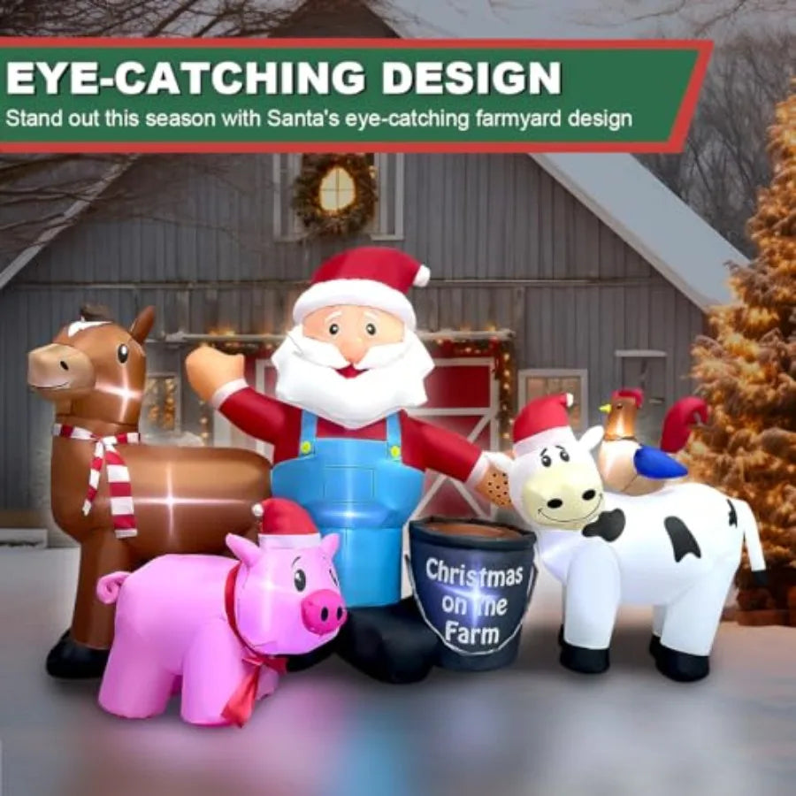 8ft Long Christmas Inflatables Santa Farm Scene Decorations Builtin LED Lighted Blow Up Decoration Home Yard Outdoor Indoor Gar