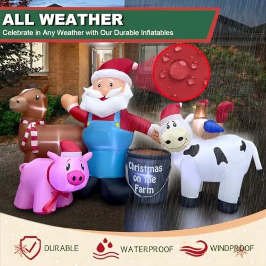 Cheerful Glow: Featuring vibrant LED lights, this inflatable Farm Santa shines brightly at night, adding a warm and joyful ambiance to your Christmas decor. The enchanting glow ensures your yard stands out and delights all who see it, making it perfect for outdoor celebrations