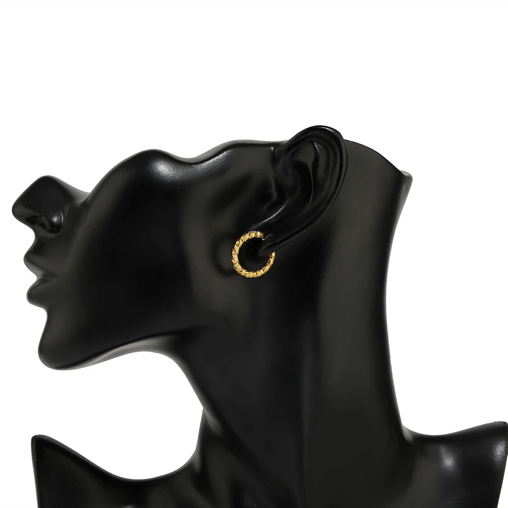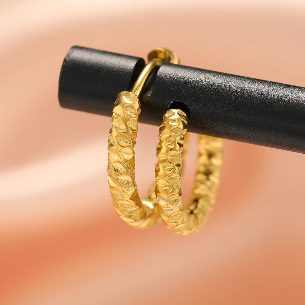 6pcs Stainless Steel Round Embossing Ear Rings PVD Gold Plated Korean Earrings Hoops Earring for Women Female Girls Metal Luxury loading