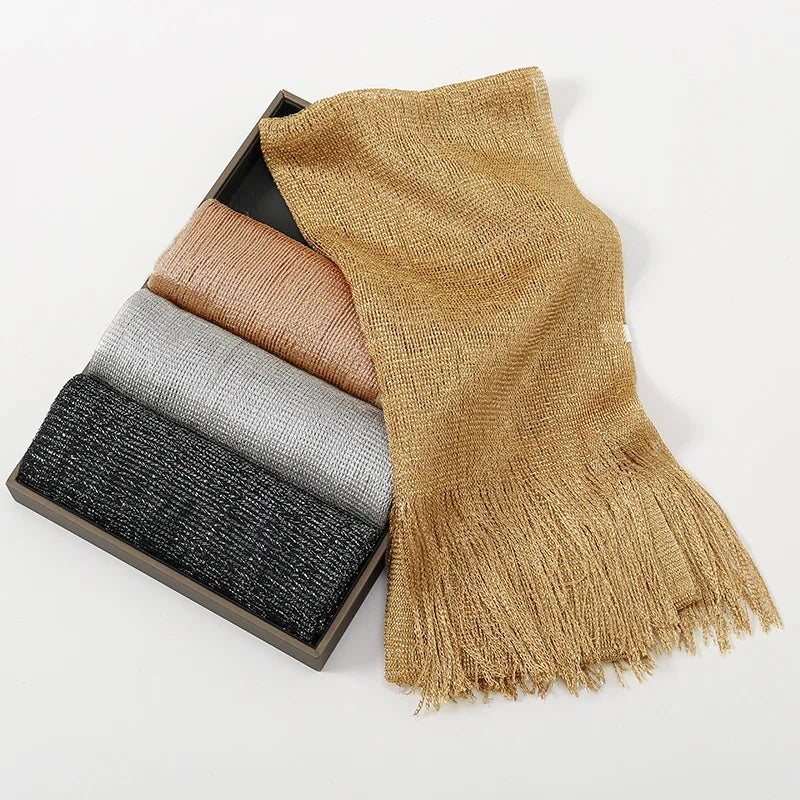 Fashion Bright Silk Sunscreen Shawl Hijab Gold Silver Shiny Scarves For Women Lace Tassel Party Evening Dress Scarf Fashion Bright Silk Sunscreen Shawl Hijab Gold Silver Shiny Scarves For Women Lace Tassel Party Evening Dress Scarf