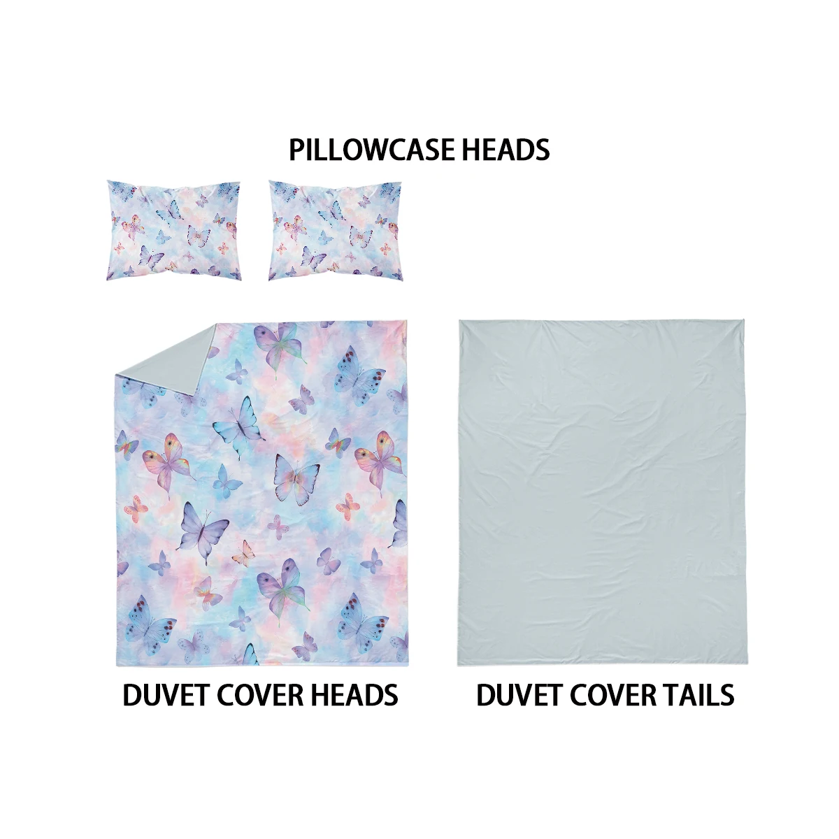 3pcs watercolor purple butterfly printed bedding set, soft and comfortable, for women bedroom, queen, king and twin bed