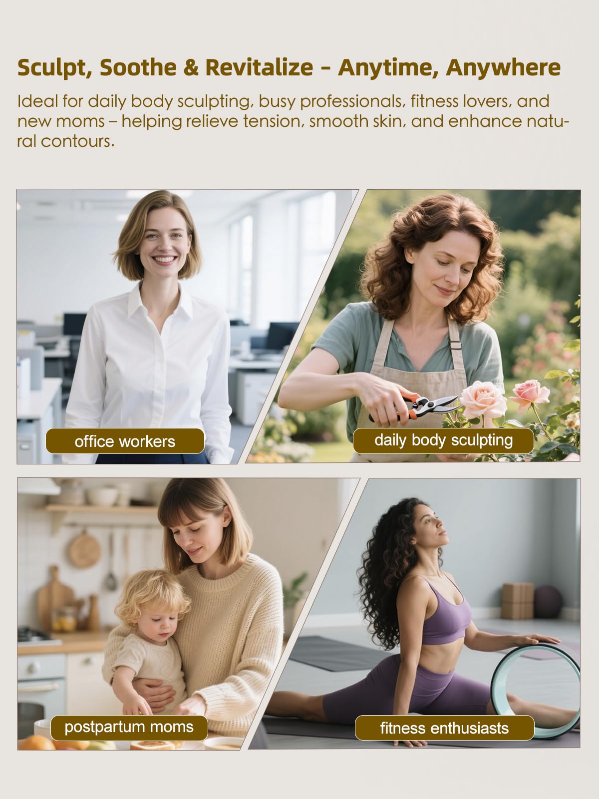 - ✅Easy & Effective Self-Care Anywhere: For enhanced performance, Use it alongside the Vitamin C or Oil to enhances absorption and deepens massage effects, and maximizes results for skin tightening, lymphatic drainage, and cellulite reduction anytime & Anywhere.